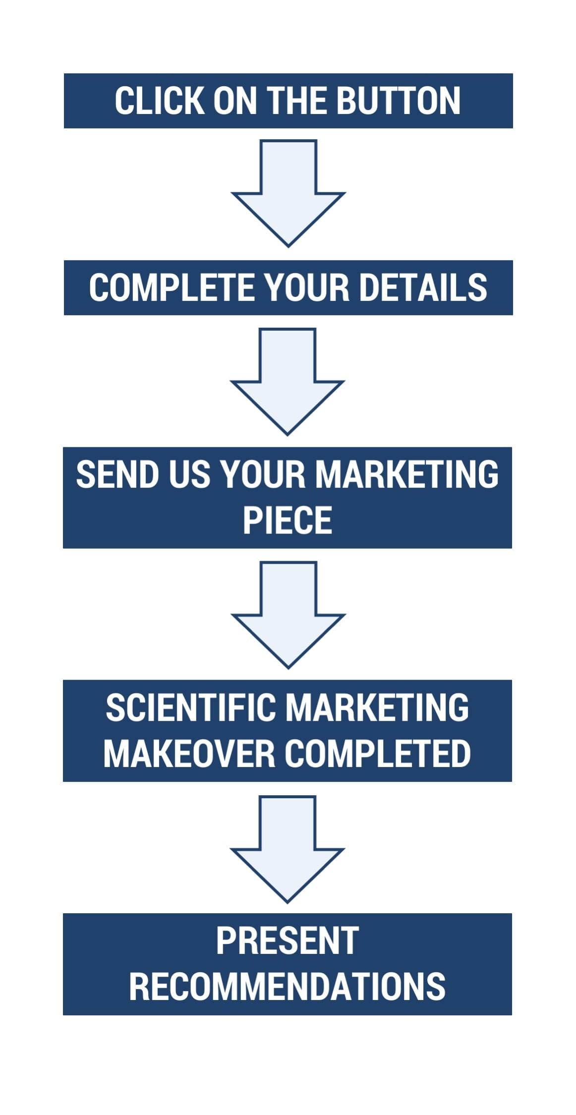 • STEP #5: Once we've carried out the Scientific Marketing Makeover, we'll be in touch to arrange a short meeting via Skype so we can show you what improvements can be made and exactly what you need to do to transform the results of your marketing piece.